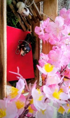 わんこと見る16年目の桜、早く満開になれーimg